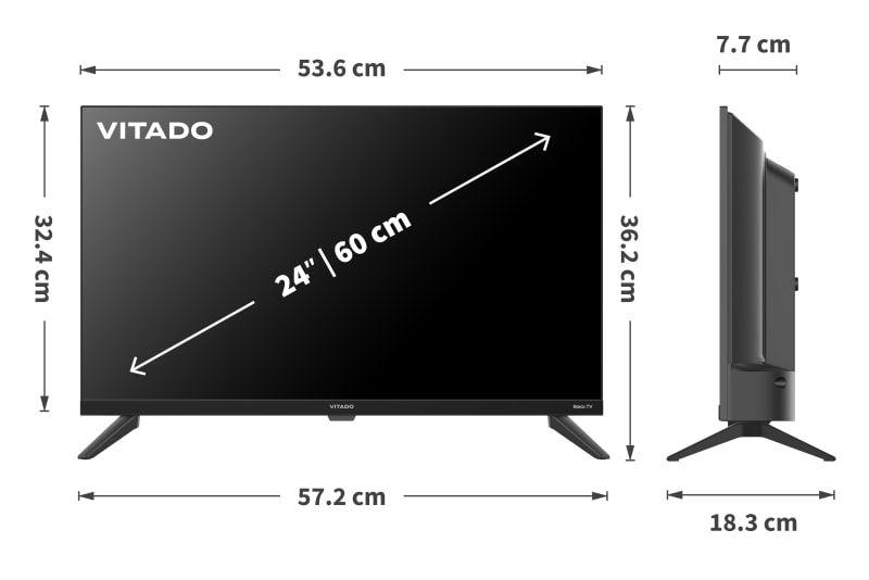 Product, Remote control, 2x AAA batteries, TV stand installation pack, Quick start guide
